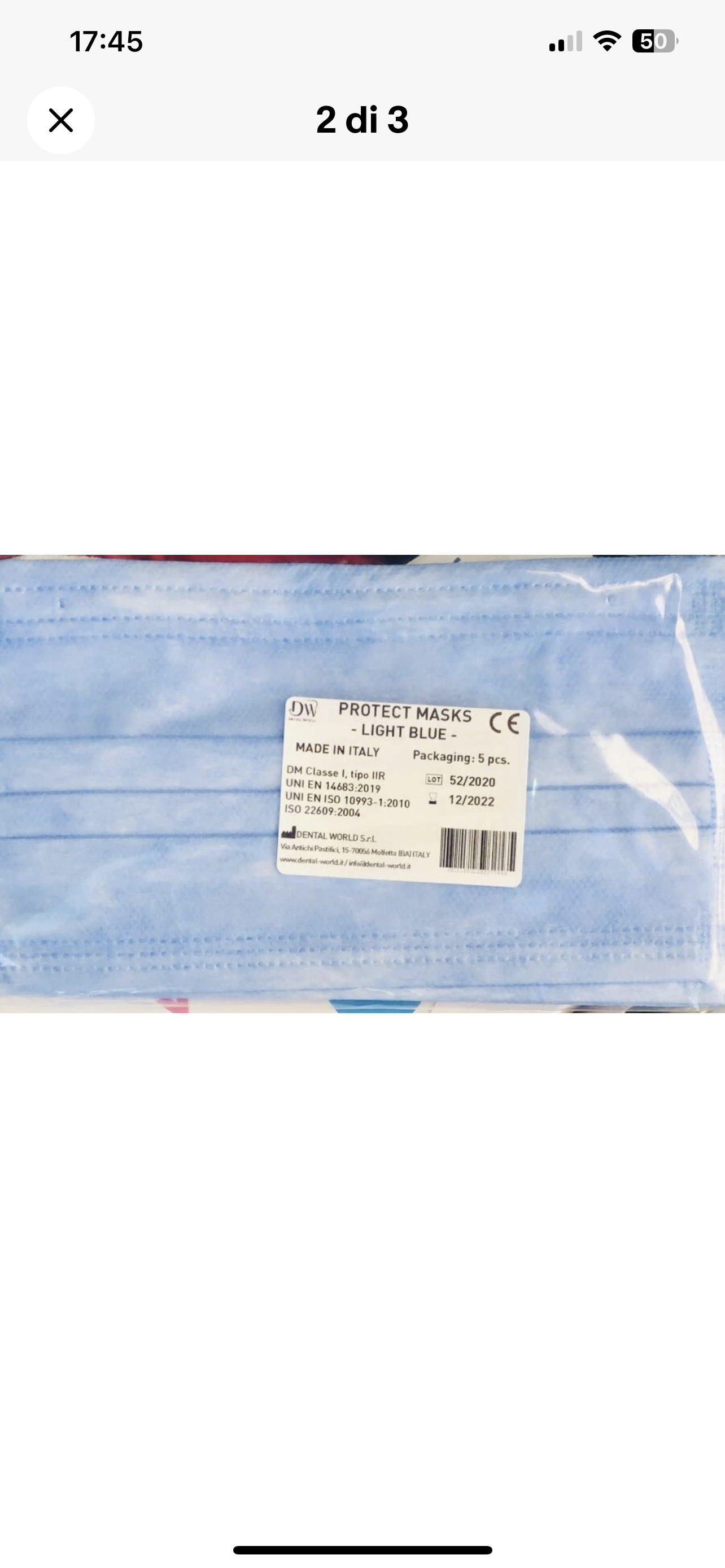 mascherine chirgiche - dim 9x 17,5 - confezione da 50 pz cusodite singolarmente - prodotto mady in italy